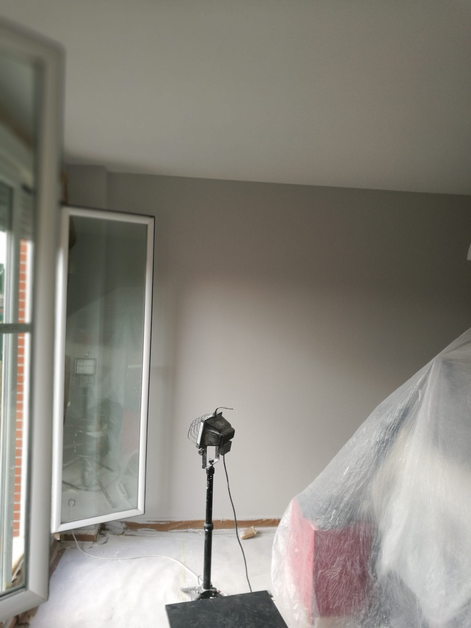 Aplicación de pintura plástica mate color gris lisa de alta decoración para dar un aspecto totalmente renovado y frescura en este salón .Todo ello escogido por la propiedad con nuestro asesoramiento personalizado de estilos y diseño.