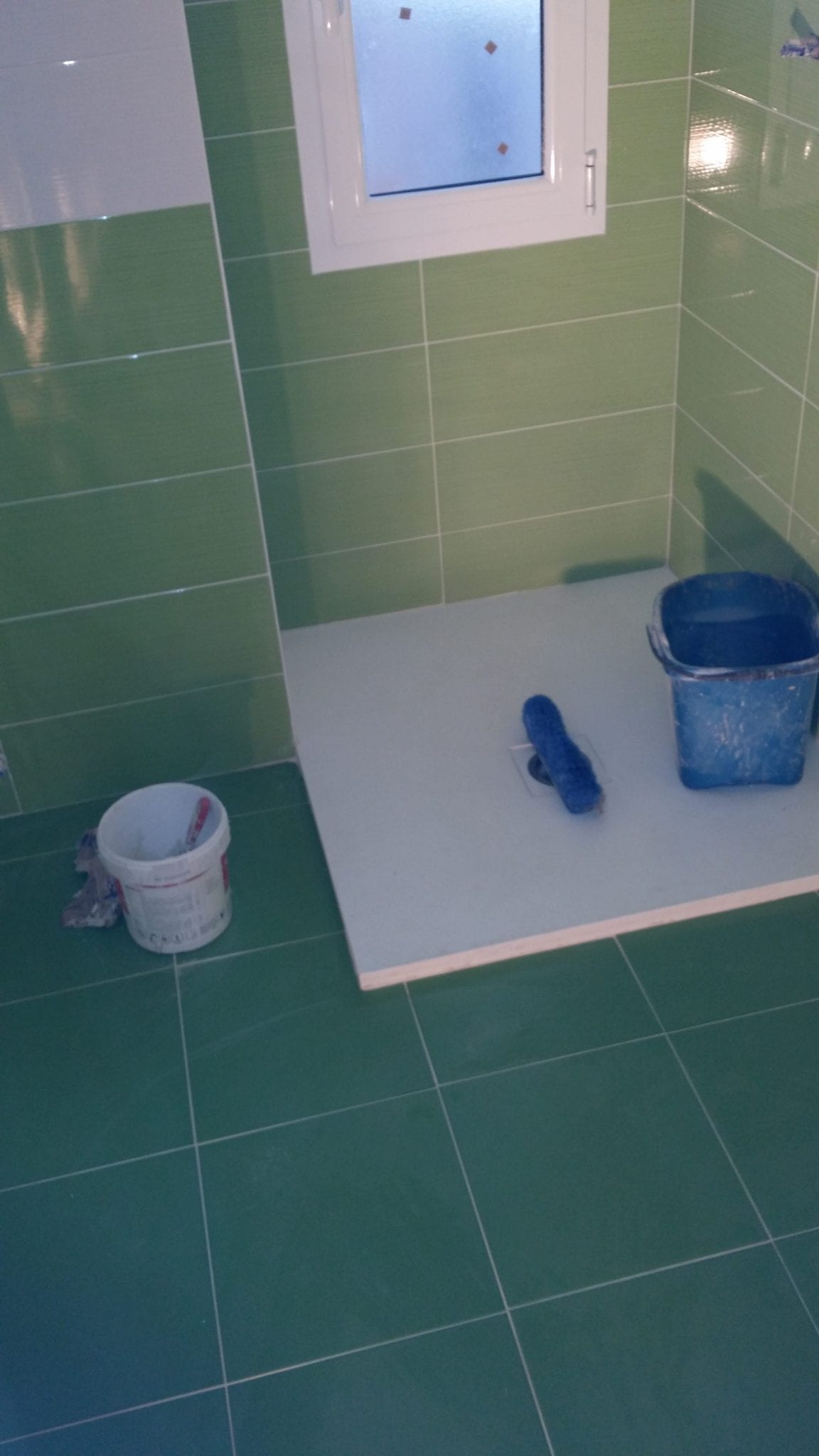 Se ha colocado un de plato de ducha , para salvar las barreras de nuestros clientes, extraplano de resina de 35mm de espesor y de 90x90cm.