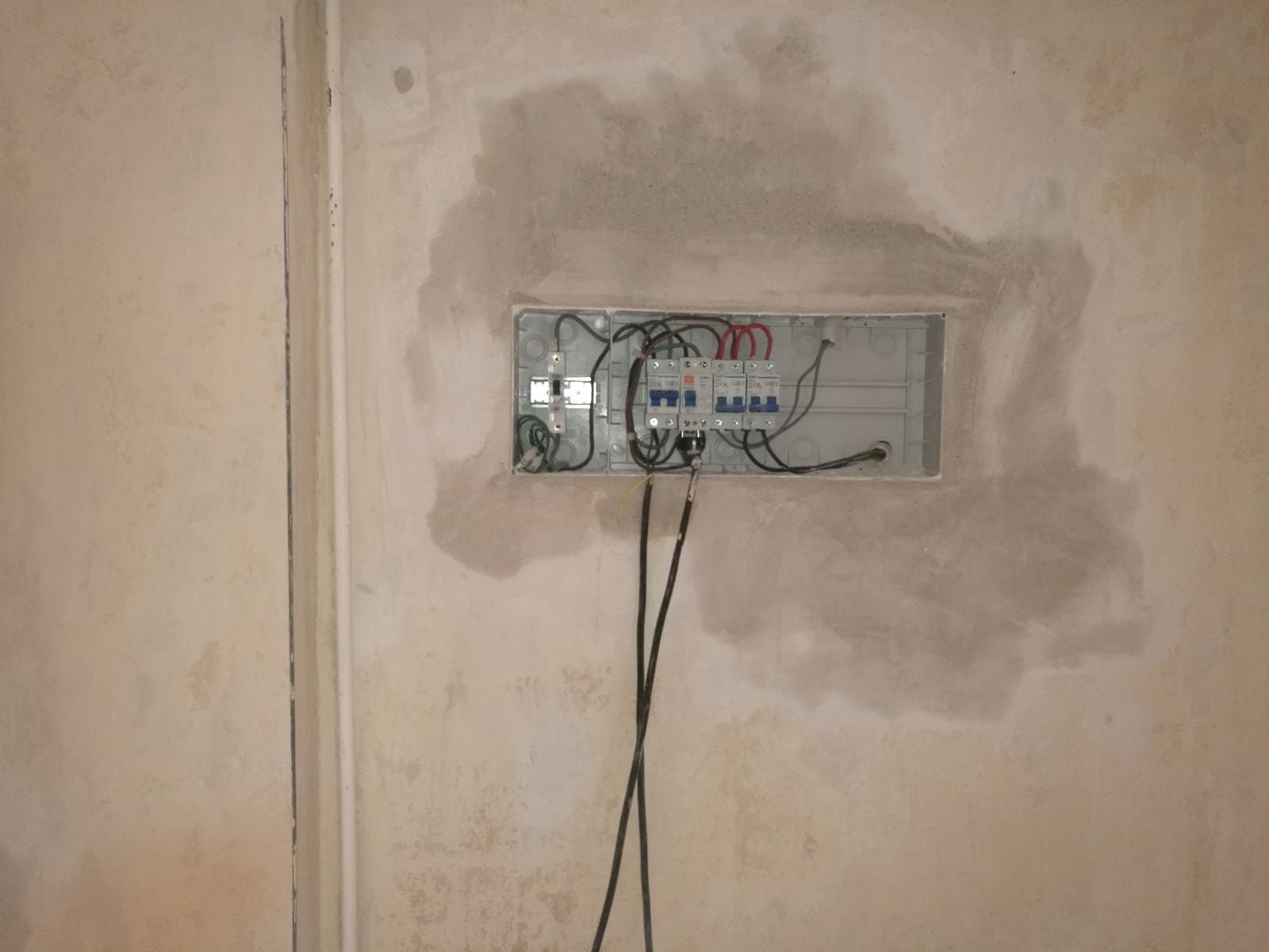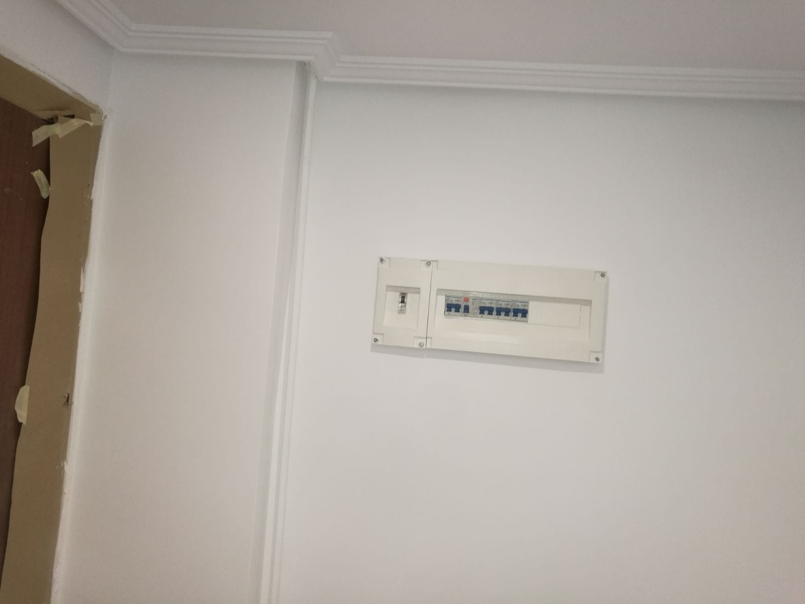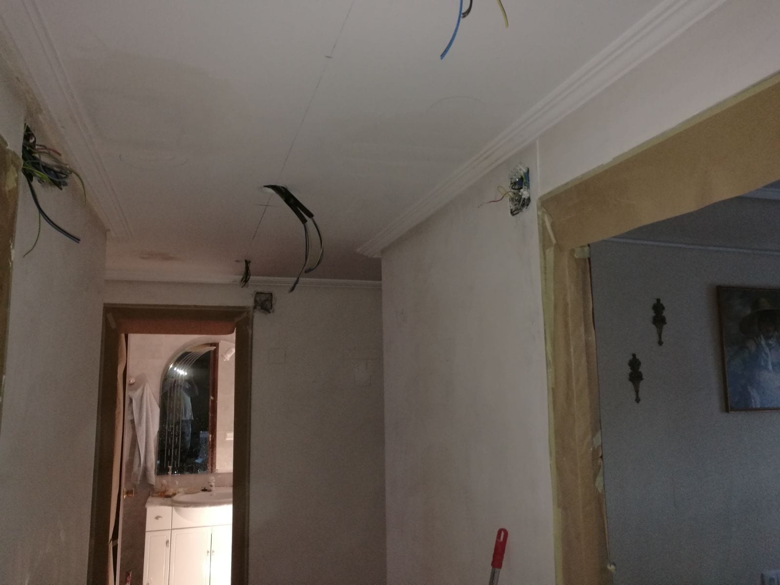 ELECTRICIDAD E ILUMINACIÓN: Procedemos a la renovación de la instalación eléctrica existente con cambio de cuadro eléctrico con todas las líneas nuevas y magnetotérmicos del mismo, con una instalación nueva para la zona de baño. Se procede también a instalar la nueva iluminación del pasillo.Se instalan halógenos de led en pasillo y baño , Haciendo las instancias mas confortables y con mas luz .