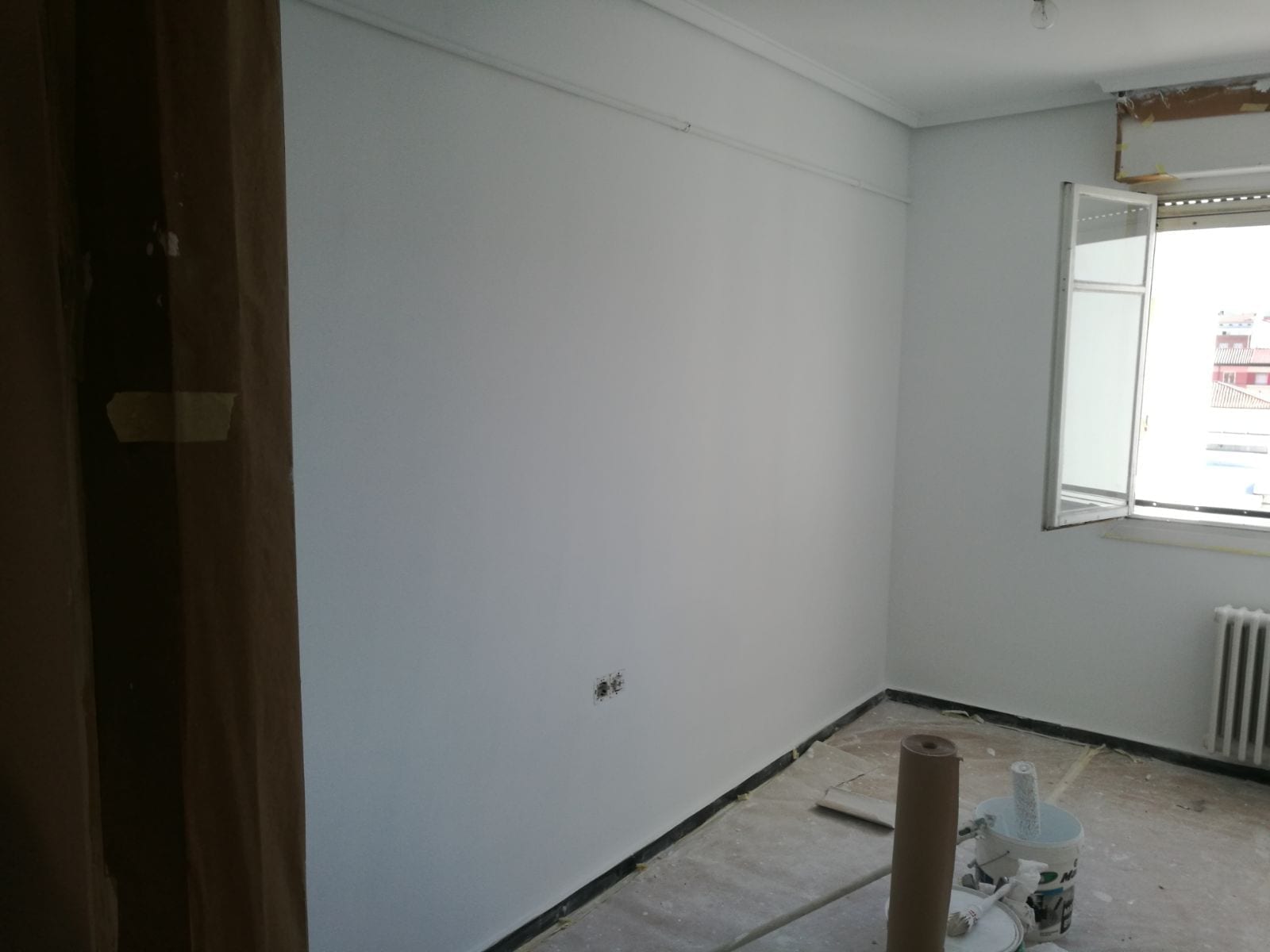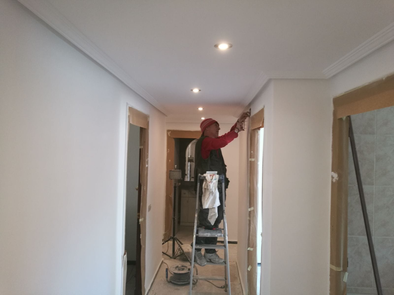 PINTURAS Y REVESTIMIENTOS: Con este capítulo se ejecuta el enlucido de paramentos verticales, de habitaciones y pasillo para proceder a pintar toda la vivienda con pintura lisa ,en este caso en color blanco. todo ello escogido por la propiedad en nuestro centro de materiales de Bigmat fontecha.