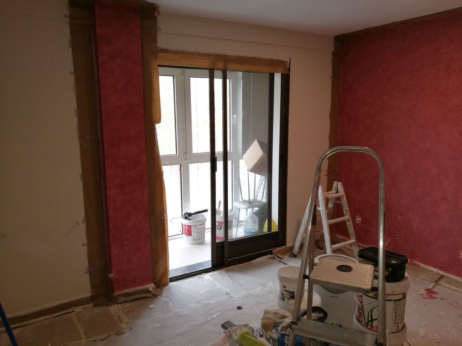 En este trabajo de decoración de salón, hemos tenido que tapar las diferentes zonas de vivienda para la ejecución de esta obra . Suelos de salón. pasillo , jambas etc…